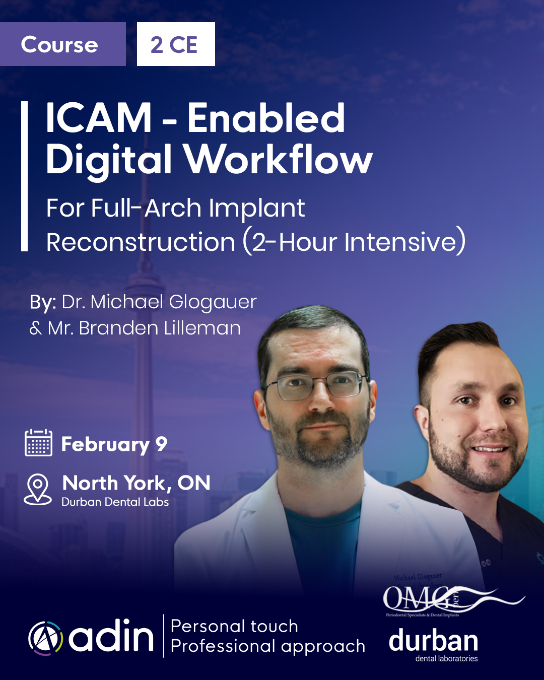Join us for a 2-hour ICAM-Enabled Digital Workflow Intensive led by Dr. Michal Glogauer, DDS, PhD, Dip Perio, FCAHS and Mr. Branden Lilleman, DD.